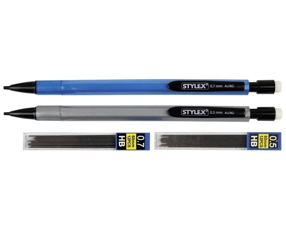 Die Stylex Druckbleistifte bieten dir maximale Flexibilität: zwei Strichstärken, hochwertige HB-Minen und ein integrierter Radierer machen sie zum idealen Begleiter für Notizen, Zeichnungen und kreative Ideen. Ein rundum praktisches Set für alle, die Wert auf Präzision und Komfort legen.
