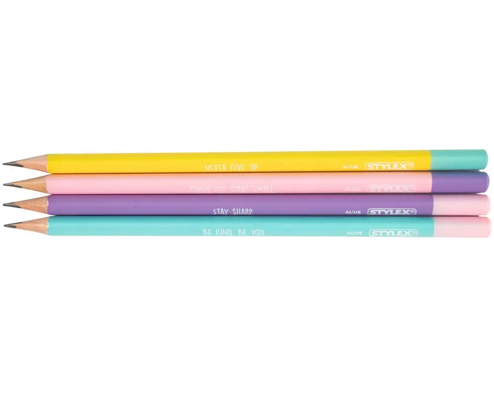 Mehr Motivation bei jedem Schreibzug! Das Stylex Bleistift-Set „Be You“ kombiniert stilvolle Farben mit inspirierenden Botschaften – perfekt für alle, die beim Schreiben, Zeichnen oder Skizzieren gerne einen positiven Impuls mitnehmen. Die vier hochwertigen HB-Bleistifte bringen Farbe, Kreativität und gute Laune in Schule, Büro und Alltag.
