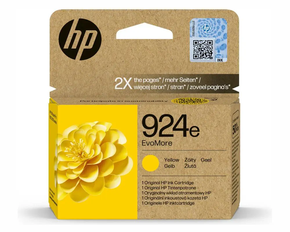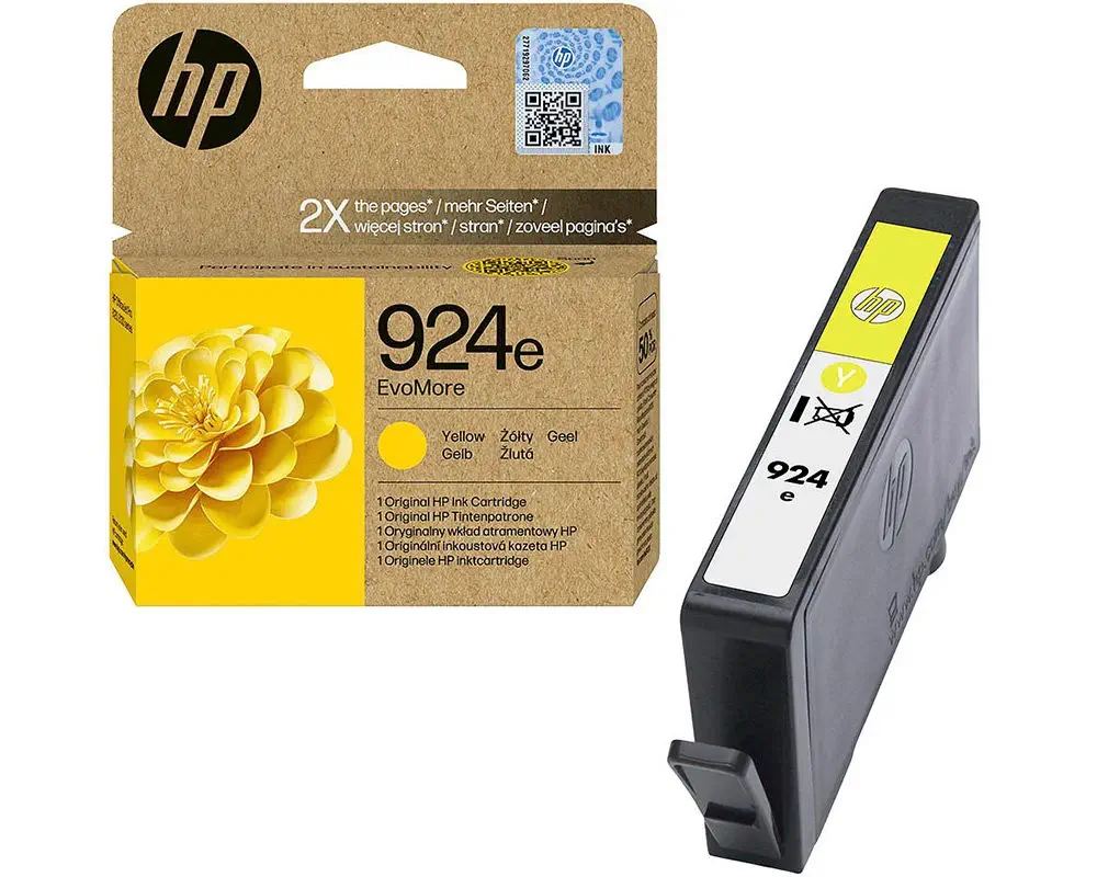 Die Original XL-Druckerpatrone HP 924e Yellow (4K0U9NE) hat eine XL-Reichweite von 800 ISO-Seiten bei einer Blattdeckung von 5% in Gelb (ISO/IEC 24711). Das "e" steht für "EvoMore" und bedeutet dank der doppelten Füllmenge gegenüber der Standard HP 924 Yellow Patrone eine Reduzierung des CO2-Fussbadruckes um die Hälfte. Die Original HP 924e Yellow Druckerpatrone sorgt für leuchtende, naturgetreue Gelbtöne und liefert gleichbleibend brillante Farbdrucke. Speziell für HP OfficeJet Pro Drucker entwickelt, ist sie ideal für farbige Dokumente, Grafiken und Präsentationen mit professionellem Anspruch.