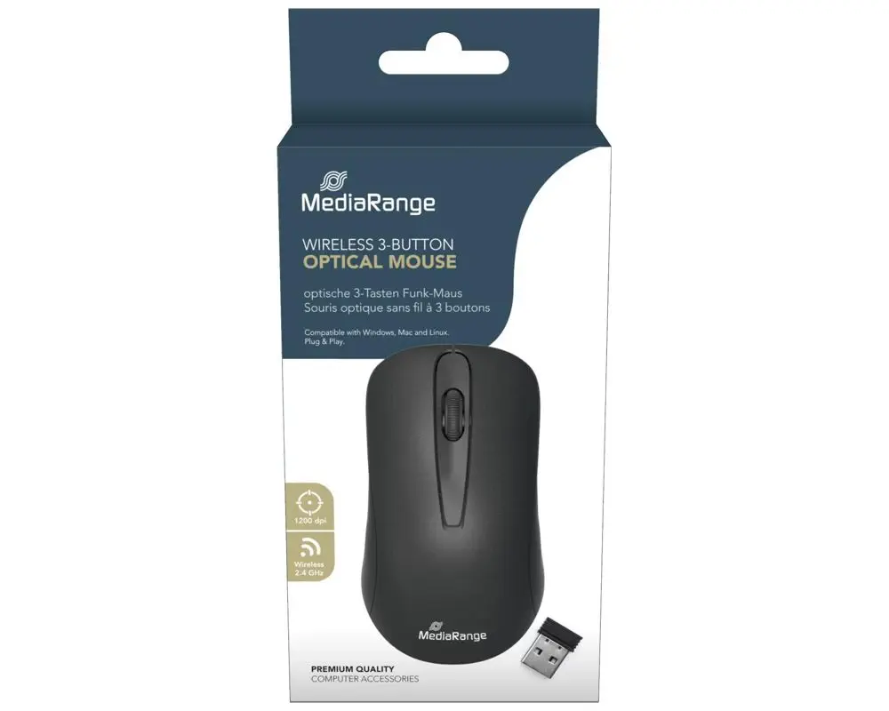 Die MediaRange MROS209 ist eine zuverlässige und komfortable Funk-Maus für den täglichen Einsatz im Büro, Homeoffice oder Zuhause. Die kabellose 2.4‑GHz-Verbindung sorgt für eine stabile Übertragung mit bis zu 10 Metern Reichweite, während der kompakte Nano‑USB-Empfänger die Maus per Plug & Play sofort einsatzbereit macht – kompatibel mit Windows, macOS und Linux.