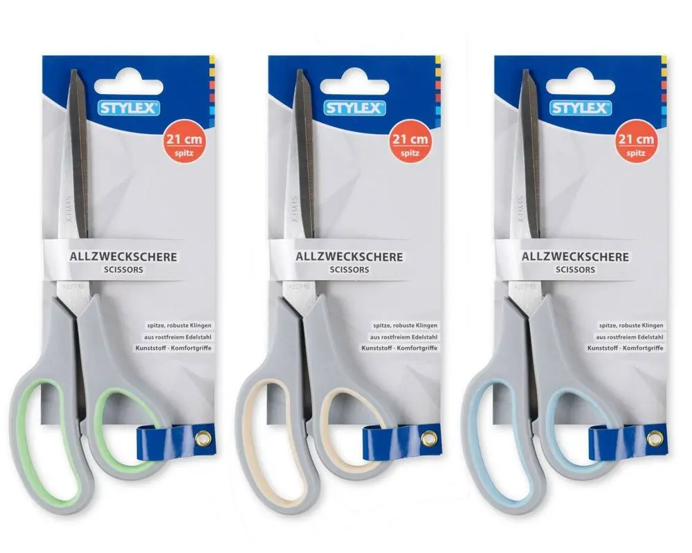 Die Stylex Allzweckschere (Art.-Nr. 42704) ist ein zuverlässiges Werkzeug für den täglichen Einsatz. Mit ihren robusten, spitzen Klingen aus rostfreiem Edelstahl bietet sie präzise Schnitte bei Papier, Karton, Folien, Stoffen und vielen weiteren Materialien. Die 21 cm Länge sorgt für optimale Hebelwirkung und ein angenehmes Schneidegefühl – ideal für Büro, Haushalt, Schule und kreative Projekte.