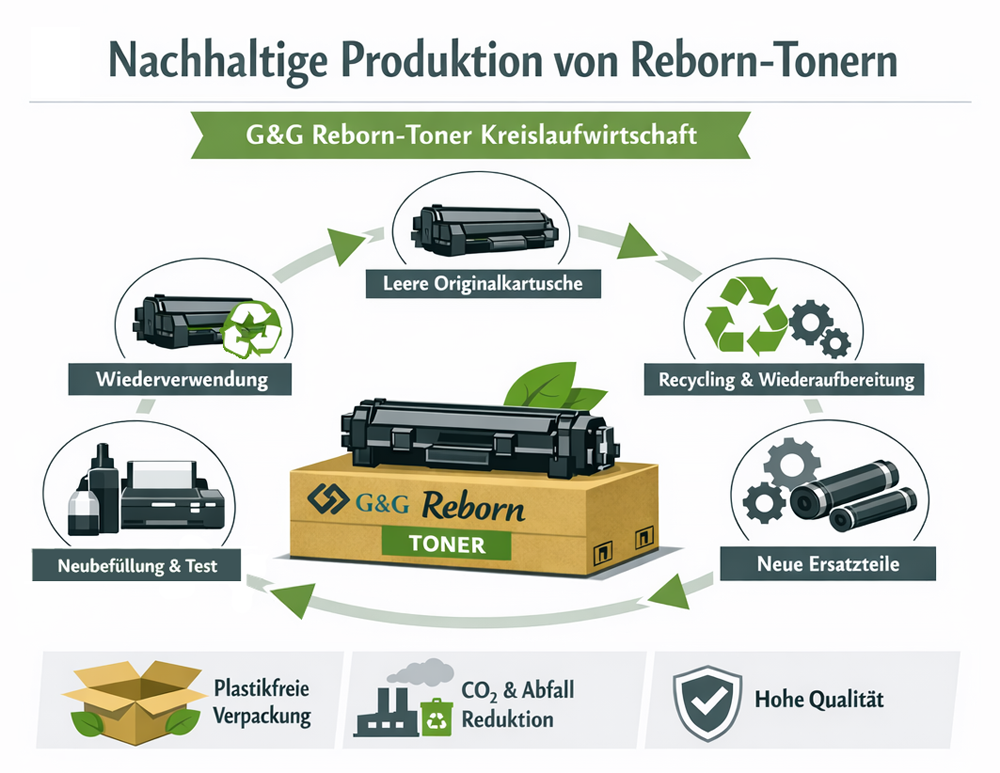 Doch nun geht der chinesische Premiumhersteller G&G (Ninestar Image) einen Schritt weiter – und präsentiert mit dem Reborn-Toner ein Produkt, das Nachhaltigkeit, Qualität und Ressourcenschonung auf ein neues Niveau hebt.