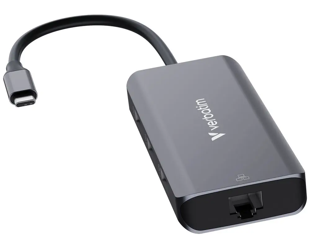 Der Verbatim USB-C® Pro 6-Port Multiport-Hub bietet bis zu 6 Anschlussmöglichkeiten. Für einen externen Monitor ist dieser Multiport von Verbatim mit 1 HDMI-Anschluss für beeindruckende 4K-Qualität bei 30Hz ausgestattet. Zusätzlich besitzt er 3 USB-A 3.2 Gen 1 mit einer Dantenrate von bis zu 5 Gbit/s, 1 USB-C PD Anschlüsse und 1 RJ45 Ethernet-Anschluss für eine stabile und schnelle Internetverbindung mit bis zu 1 Gbit/s. Verwandeln Sie mit dem USB-C Pro 6-Port Multiport-Hub von Verbatim Ihren Laptop in eine Multimedia-Station. Das einzige was Ihr Gerät benötigt ist ein USB-C Anschluss.