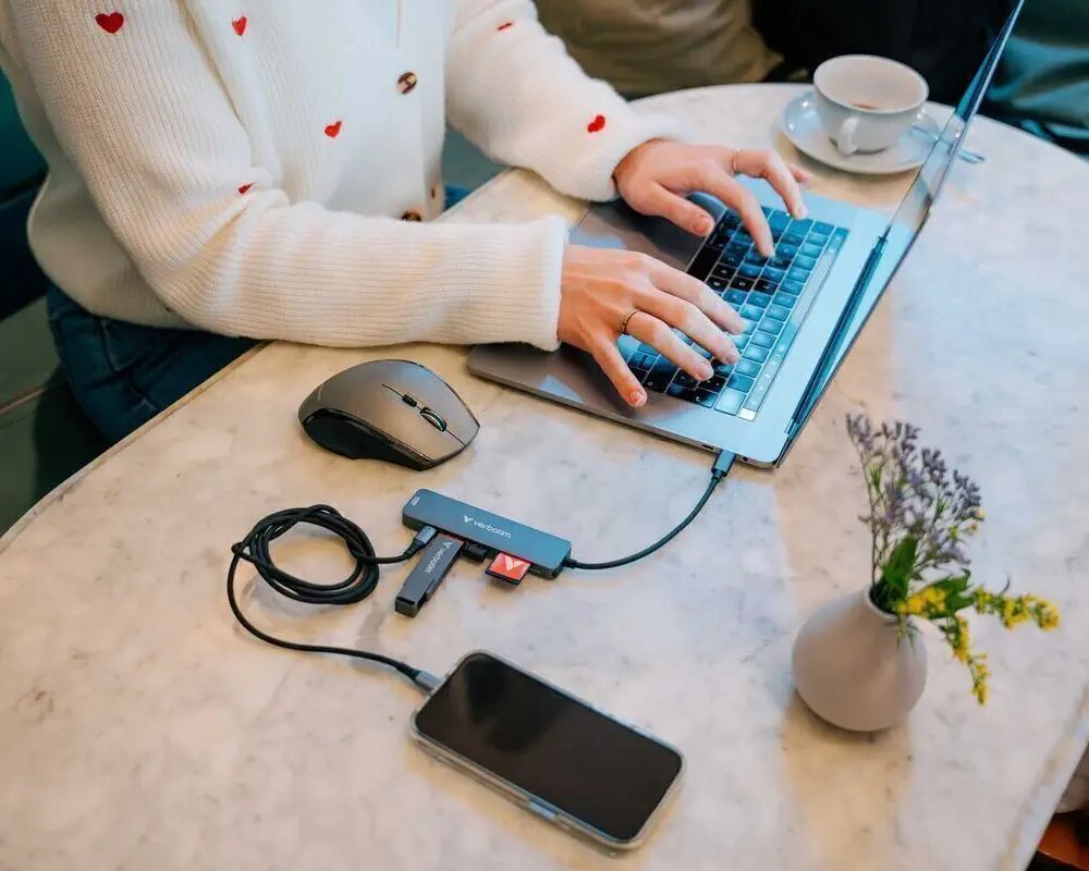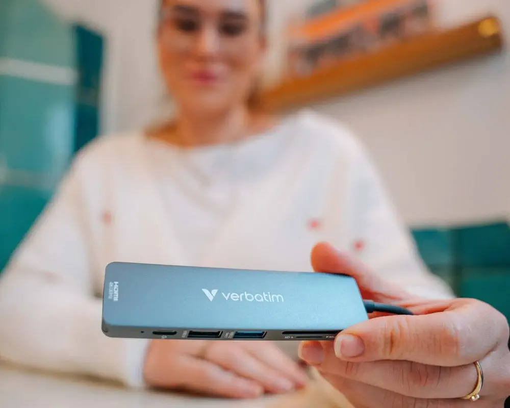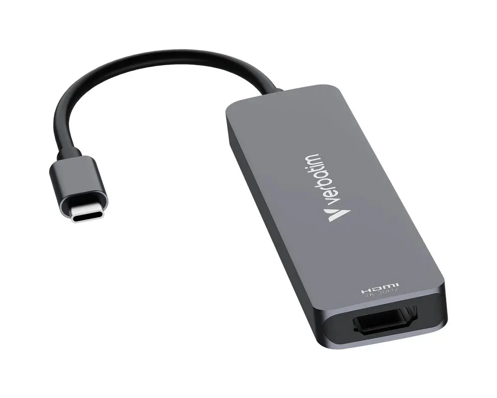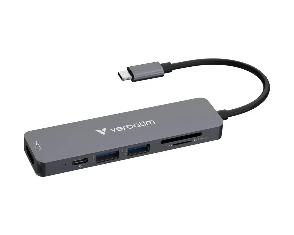 Der Verbatim USB-C® Pro 6-Port Multiport-Hub bietet bis zu 6 Anschlussmöglichkeiten. Für einen externen Monitor ist dieser Multiport von Verbatim mit 1 HDMI-Anschluss in beeindruckender 4K-Qualität bei 30Hz ausgestattet. Perfekt für Präsentationen, Filme-Streaming oder zum Erweitern deines Desktops auf einen größeren Bildschirm. Zusätzlich besitzt der Multiport 1 USB-A 3.2 Gen 1 mit einer Datenrate von bis zu 5 Gbit/s, 1 USB-A 2.0 mit einer Übertragungsgeschwindigkeiten von bis zu 480 Mbit/s und 1 USB-C PD Anschluss. 1 SD- und microSD-Kartenleser, ein Muss für Kreative ubnd Profis. Verwandeln Sie mit dem USB-C Pro 6-Port Multiport-Hub von Verbatim Ihren Laptop in eine Multimedia-Station. Das einzige was Ihr Gerät benötigt ist ein USB-C Anschluss.