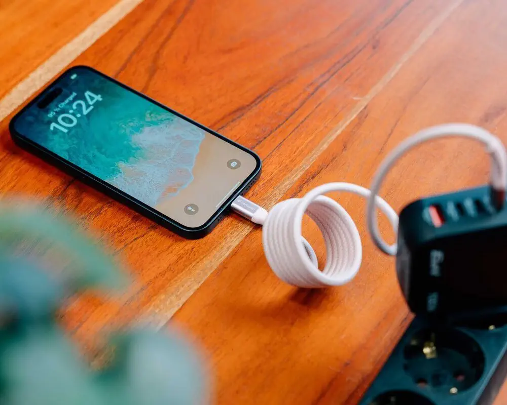 Das graue Magnetkabel sorgt dafür, dass dein Arbeitsplatz aufgeräumt bleibt und das Kabel jederzeit griffbereit ist. Die spiralförmige Struktur verhindert Verknoten, sodass du deine Geräte schnell anschließen und laden kannst – perfekt für Zuhause, Büro oder unterwegs.