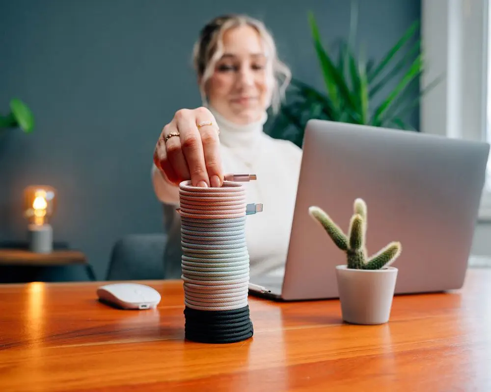 Das grüne Magnetkabel sorgt dafür, dass dein Arbeitsplatz aufgeräumt bleibt und das Kabel jederzeit griffbereit ist. Die spiralförmige Struktur verhindert Verknoten, sodass du deine Geräte schnell anschließen und laden kannst – perfekt für Zuhause, Büro oder unterwegs.